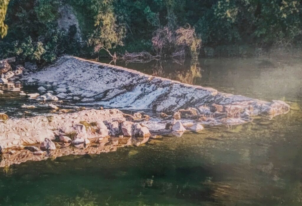 Imaginez la carte postale : un beau seuil en pierres du Gardon, accompagné de ses deux moulins consolidés et restaurés dans les règles de l’art.